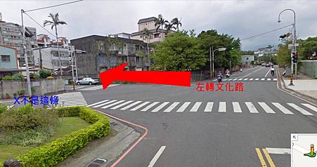 2. 直走100公尺後會遇到4叉路口,準備左轉文化路